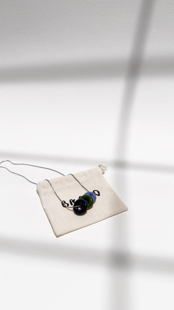 El collar es entregado con una bolsita de lienzo, para que sean guardados después de usarlos, resguardándolos.